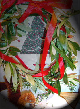 クリスマスはあんまり関係ないけれど オリーブの枝とローズマリーで遊んでみました。