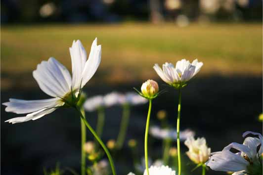 コスモス咲く夕方の散歩道