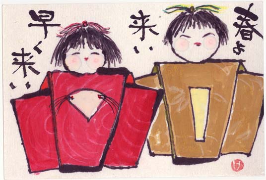 絵手紙のおひなさま。